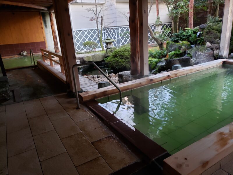 エメラルドグリーンのお湯も綺麗だし、月岡温泉は硫黄含有量が全国2位のお湯だそうなので、硫黄の香りも凄いです。温泉にキタという気持ちにさせてくれます。